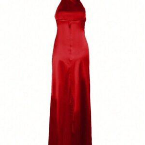 Red Sexy Women's Sleeveless V-Neck Bodycon Dress With High Slit