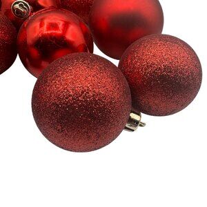 Ideal for decorating Christmas trees and festive spaces, these red ornaments feature a blend of glossy and glitter finishes for a vibrant holiday display.