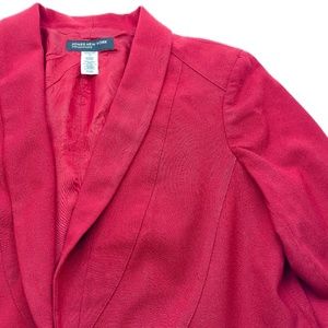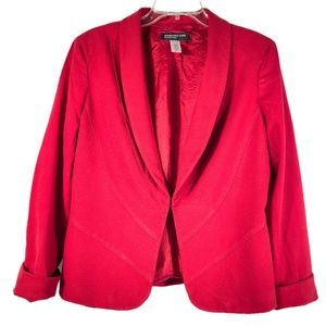 Red Shawl Collar Wool Blend Blazer with Top Stitch Design