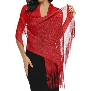 Red Shawls Wraps Scarf Sparkly Glitter Formal Evening Holiday Party Dress Shawls