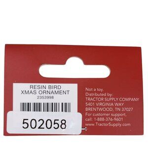 Festive bird ornament adds holiday charm to trees or displays. Features a cheerful red and green design with snowflake detail.
