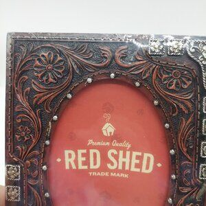 Red Shed Photo Frame 4x6 Brown Silver Floral Oranate READ