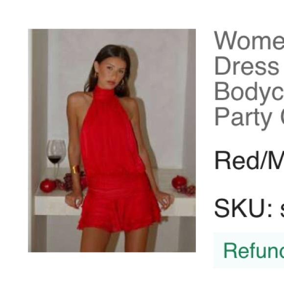 Sleeveless halter neck mini dress in bright red. Sheer pleated waist with ruffle hem. Backless self-tie detail. Flowy party-ready silhouette.