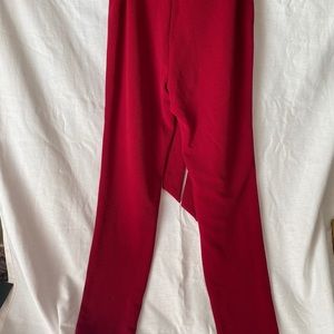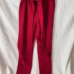 Red dress pants with a built in fabric ‘belt’