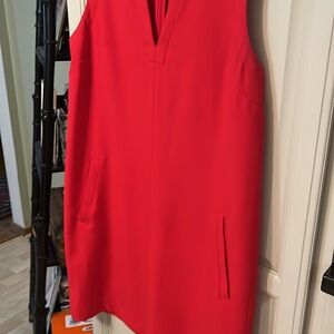 This elegant red sleeveless dress is perfect for any occasion. Its vibrant color adds a touch of sophistication to your wardrobe. 18” armpit to armpit. 35” length. No snags, tears, stains. Like new. I am a fast shipper & top rated seller. Can wear on its own or with blazer or with blouse underneath.