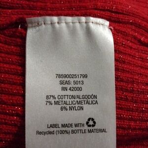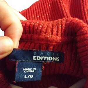 Red Shimmer Turtleneck Ribbed Basic Editions Long Slve Sweater Holiday Festive L