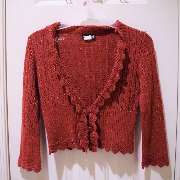 Sparkly glittery cropped cardigan w/ scalloped ruffles