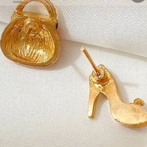 Purse And Heels 14K Plated Shiny Alloy Rhinestone Earrings.