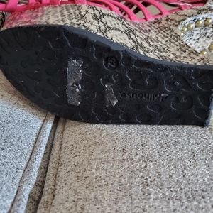 Red Snakeskin Platform Strap Shoes. GOLD STUDS on back, zipper upper back, suede & Leather straps, Comfy!