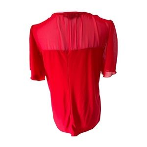 Red Short Sleeve Blouse with Sheer Panels and Sleeves and Gold Detail-Sz L
