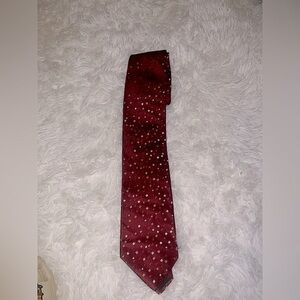 This red silk tie features a delicate pattern of small dots, adding a touch of elegance to any formal ensemble. Its classic width and luxurious sheen make it a timeless accessory for special occasions. Crafted for sophistication, this tie is a must-have for your wardrobe. Pre-owned