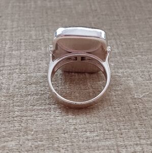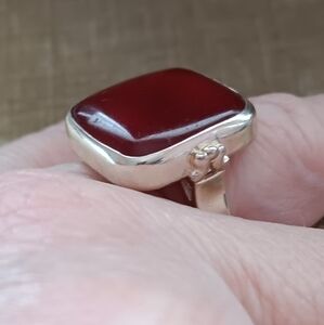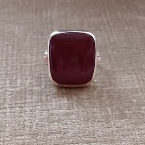 This elegant silver ring features a striking red square gemstone set in a sleek design.