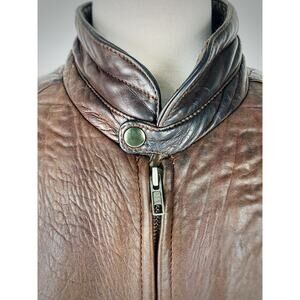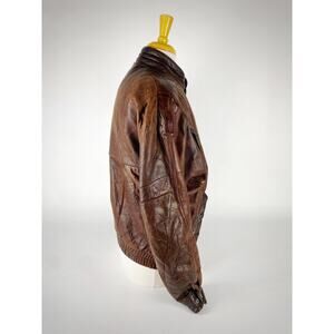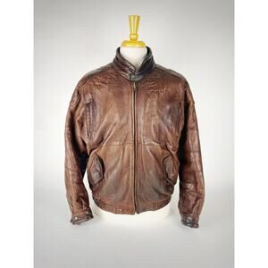 Absolutely stunning and buttery soft authentic brown bomber leather jacket from the 80's is a must have for any man's closet, especially those who love rocking the Aviation Vintage Style. This jacket features a main zipper with button closure. Two smaller top zipper pockets, two main bottom pockets with button closure, and elbow patches as well. There is also a small inside pocket for a phone, or wallet and such. Overall this jacket is in amazing condition for its age, with only a few minor flaws. There is two small spots where the stitching has come undone. One is on one patch of the elbow patch and another is one minor separation in the leather on the backside of that arm. Both can easily be fixed! There is also a few small nicks, back from, arms and such, none of them affect to use and wear of the jacket, and is minor distress. There is also some oxidation on the top closure button and zipper, that has made some green tinting. Cannot be seen on the leather itself, but can be seen on the metal of the button. I wiped off the most I could by hand. A better cleaning could most likely remove the rest. You can't go wrong with adding this jacket to your vintage collection! (PLEASE SEE PHOTOS!)