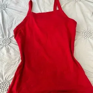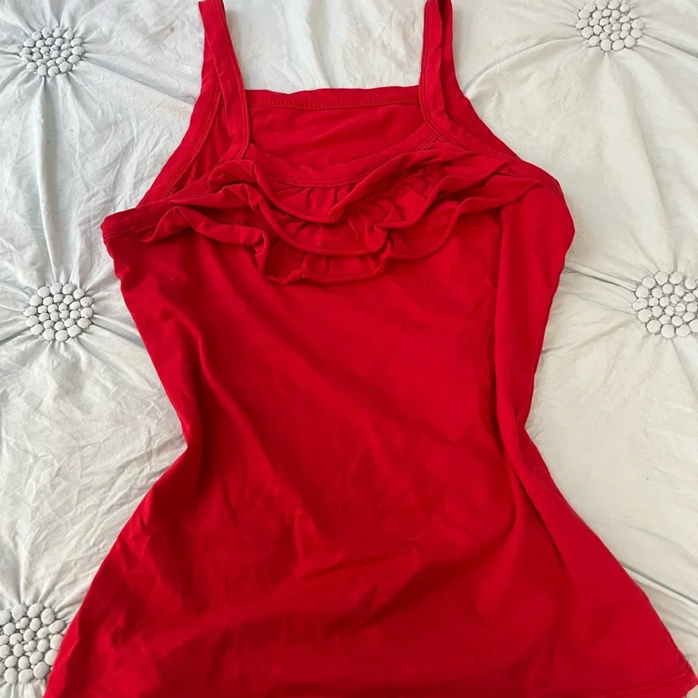 Add a pop of color to your wardrobe with this vibrant red sleeveless top. Featuring stylish ruffles, it's perfect for any occasion.