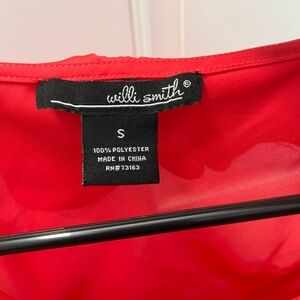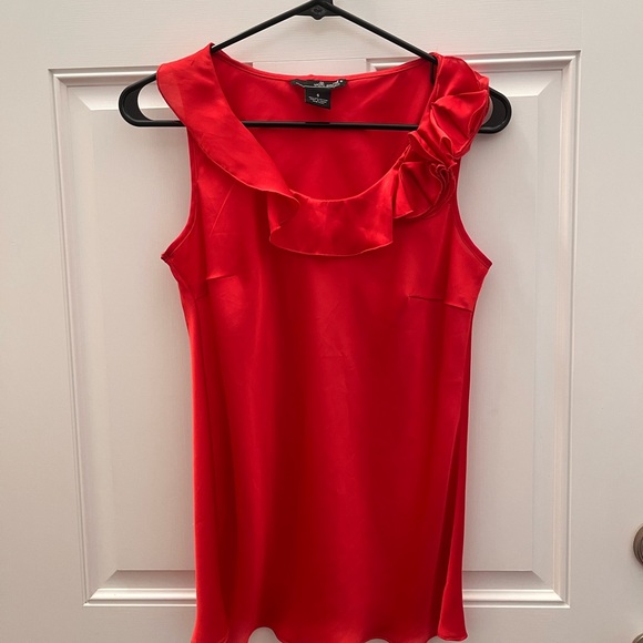 Elegant red sleeveless top with ruffle detail. Perfect for any occasion.
