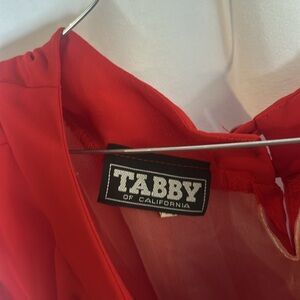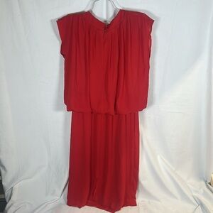 This vibrant red sundress features a sleeveless design with a crew neck and stylish Dolman sleeves. The dress has a loose, flowing top that drapes beautifully, complemented by a fitted skirt that enhances its elegant silhouette. Perfect for a night out, this dress combines comfort and style effortlessly. vintage !!!