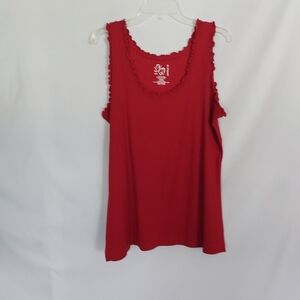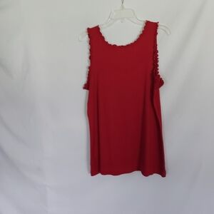 This vibrant red sleeveless top is perfect for any occasion. Its stylish design adds a pop of color to your wardrobe. Armpit to armpit is 19 inches and top to bottom is 25 inches.