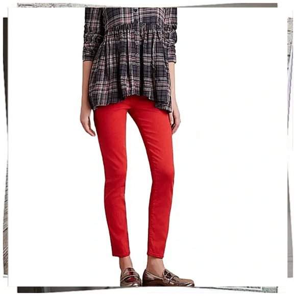 Red Slim Straight Leg Stevie Ankle Jeans by Ag Adriano Goldschmied. I wore these once and they are in new condition.