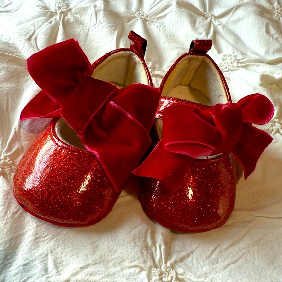 Cute sparkly red slippers. Size 6-12 months.