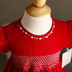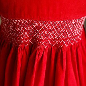 Red Smocked Cotton Pinwale Corduroy Dress Size 4/5 Boutique Traditional NWT