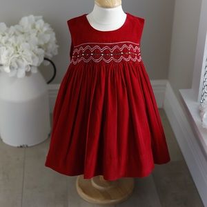 Red Smocked Dress Cotton Corduroy Embroidery Sleeveless 18 Months PERFECT