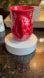 Festive red mug with white snowflake design. Perfect for holiday drinks. Christmas Holidays
