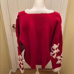 Cozy up in this festive red sweater featuring charming white snowflake designs. Perfect for adding a touch of holiday spirit to your wardrobe. Brand 33 degrees extra large worn once and dry cleaned.