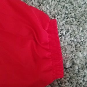 Red Sox, v-neck, thick nylon, lined pullover,Genuine Merchandise by Kid Athlete. Size 18/20 kids. Banded bottom and sleeves. Partial zipper on bottom left side; red with navy and white trim and lettering