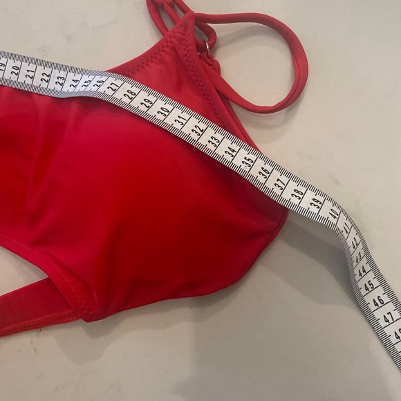 This hot red bikini one piece has been WORN ONCE. It currently sits in my swimsuit drawer and it should be worn by someone who would love to rock it.