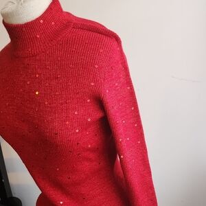 Show up to the holiday party in style - and in double the sparkle! Shine bright in this metallic red swater that also features sequins. This would have been perfect to ring in Y2K and welcome the new millenium, but still looks classic now. EUC, no flaws noted.