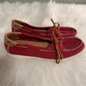 Red Sperrys Gently worn, some signs of wear on the bottoms