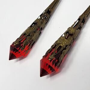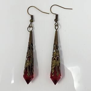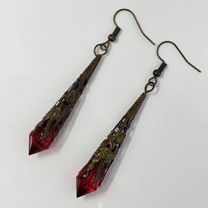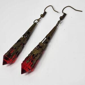 Red Spike Brass Filigree Goth Earrings