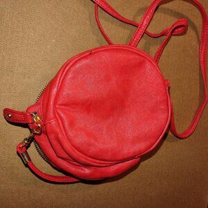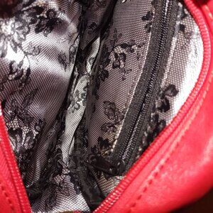 Red Spiral Zipper Round Crossbody Bag W/Adjustable Strap & Lace-Lined Interior