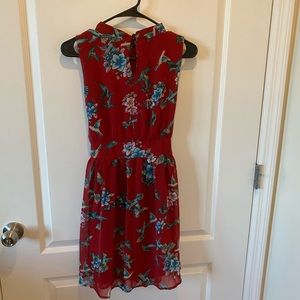 Red pattern dress with side zipper (see picture) lightly worn size small