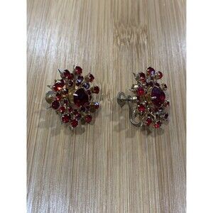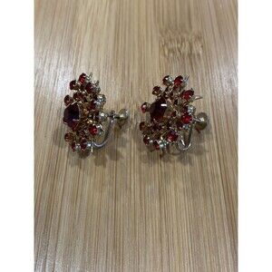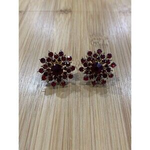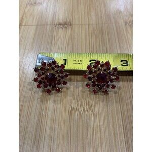 Red Starburst Coro Screw Back Earrings Vintage Gold-Tone Costume Jewelry. Condition is Pre-owned. Shipped with USPS Ground Advantage.