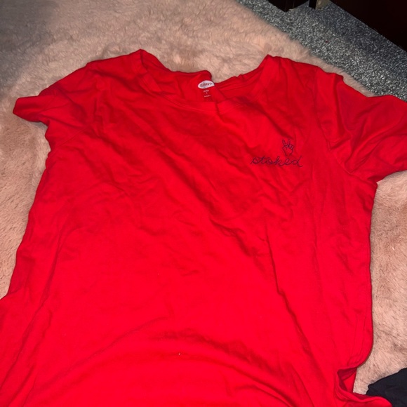 Red “stoked” stitched tee
