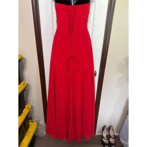 Red Strapless Embellished Corset Back Gown Formal Prom Party Dress