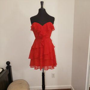 Red Strapless Ruffle Cocktail Dress