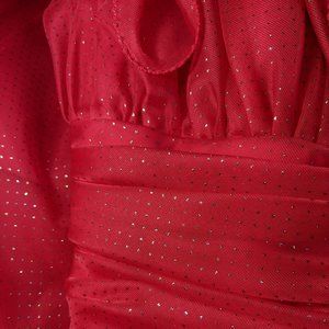 Red strapless sparkle prom dress by Mike Benet Formals. Vintage! Original owner. Paid over $450, worn once! Beautiful red dress with built in crinoline skirt and sheer overlay with amazing sparkle. Tag shows size 6, but, measurements align more with a size 0 (see pics and below). Back closes with a working zipper and two sets of hook/loops. Dress has hanging loops attached and has been stored in a dry cleaning sleeve. Bodice is tight fitting with medium stiff boning to maintain shape. Very tiny mark on top inside of dress with a little fading in same area (picture), which is not visible on the outside. Aside from this, there are no marks, stains or rips, excellent condition! Please see all pictures, which are of actual dress. Last two pictures were taken in approximately 1987-1990 and I apologize for the quality. Pet free, smoke free household. Approximate measurements are in pictures and below, please let me know if you have any questions, thanks for looking!