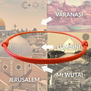Features: Double-strand red string bracelet crafted from durable waxed nylon, inspired by sacred sites like Varanasi, Lumbini, and Mount Wutai, then handcrafted in Jerusalem. Fully adjustable and waterproof, perfect for daily wear or spiritual practice.