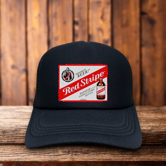 Red Stripe Jamaican Beer Unisex Trucker Hat Black Snapback Original Label Cap