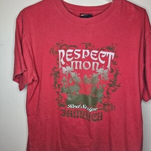Red Stripe Red "Respect Mon" Jamaica Graphic T-Shirt Size Large