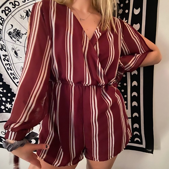 Long Sleeve Red Stripe Romper with arm cutouts. Size 1X