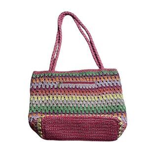 Red Striped Crochet Shoulder Bag Medium Multicolor