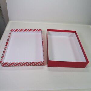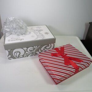 Red Striped and Large Gray Deer Metallic (2) Gift Boxes Holiday Winter