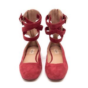 Red Suede Ankle Wrap Ballet Rubino 39 Flats