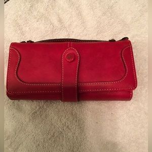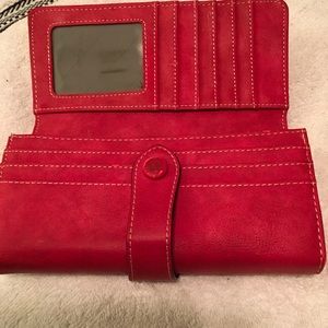 Used micro suede wallet, very good condition. Has multiple slots for cards, spaces for money and change.