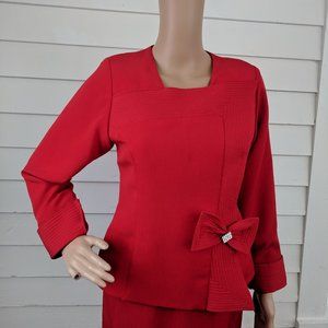 Red Suit Jacket Skirt Holiday Christmas Church 80s