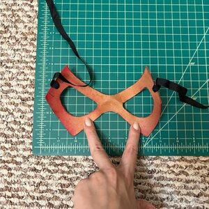 Bold red superhero mask. Perfect for costumes or cosplay. Domino mask real leather, adjustable ribbon