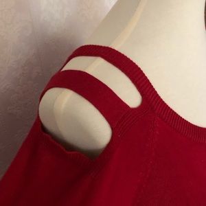Beautiful red long sleeve sweater with peekaboo slits on shoulders.